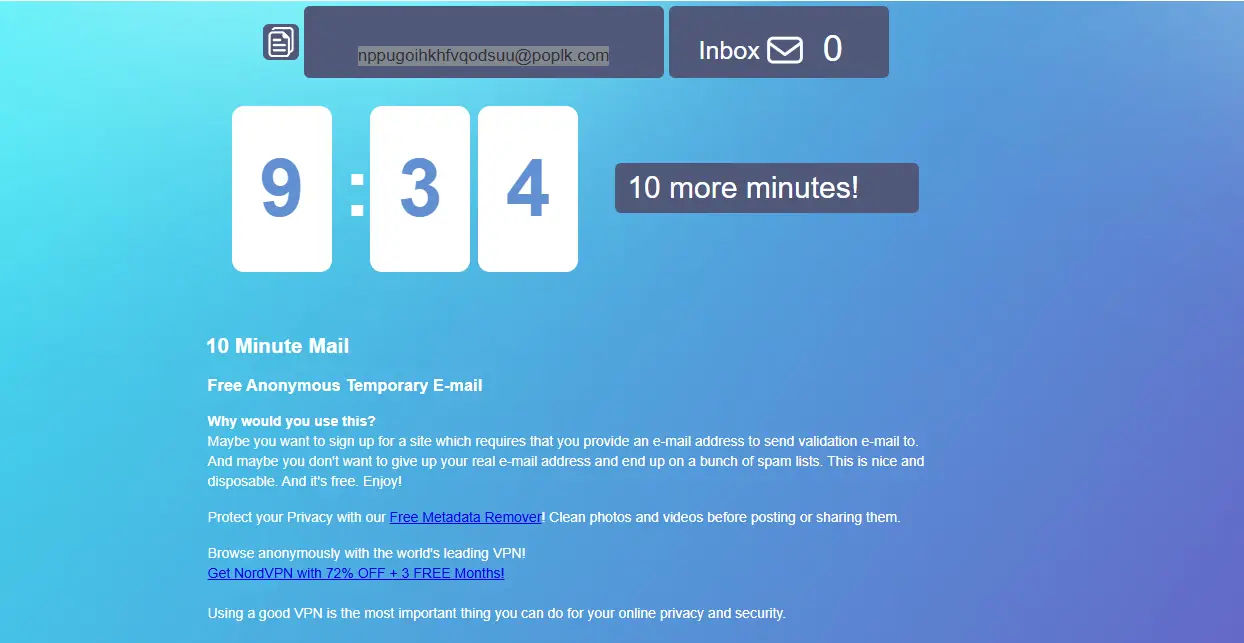 If you're in a hurry and want a no-frills solution, 10 Minute Mail remains one of the best temp mail options for short-term, private email access.