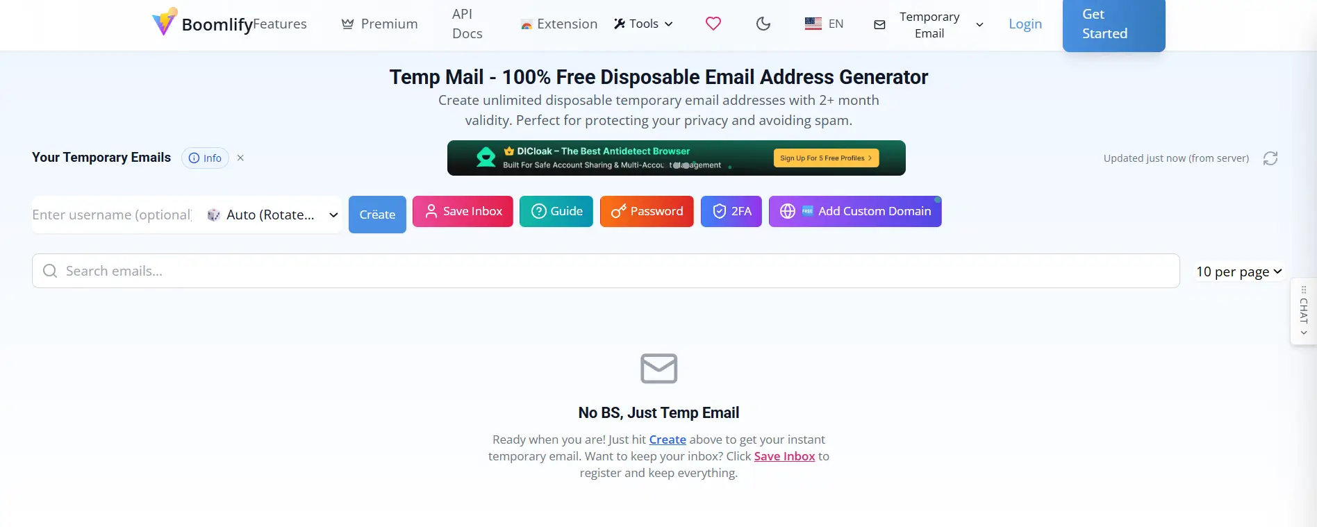 It’s also one of the few temp mail tools with a Chrome extension, allowing you to generate burner emails instantly while browsing any site.