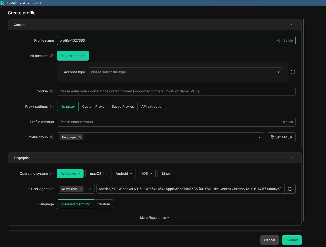 DICloak creates unique browser profiles for each session, making it look like you're a different user. This includes different IP addresses, user agents, screen resolutions, and even WebRTC and hardware setups. It’s like running hundreds of browsers on different machines all from one place.