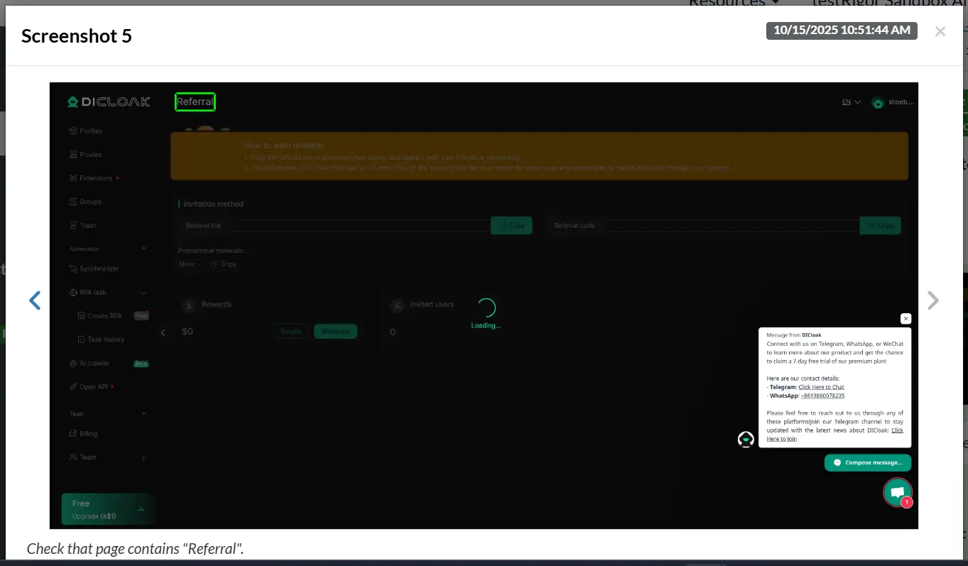 Securing sensitive data is one of the most important features for a privacy application. During testing, synthetic test data must be generated on which the application must be run. While this data is used for running the application, the testing tool must validate that there is no leakage of the data and that it is completely secured. This includes a comprehensive functionality testing of the most important aspect of the application. One of the most useful techniques for anti-tracking security is to create a proxy for your web application. Let’s see how it is done using testRigor for the Dicloak privacy application.