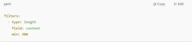 You can also set filters. For example, you might want to skip very short pages. Add this: