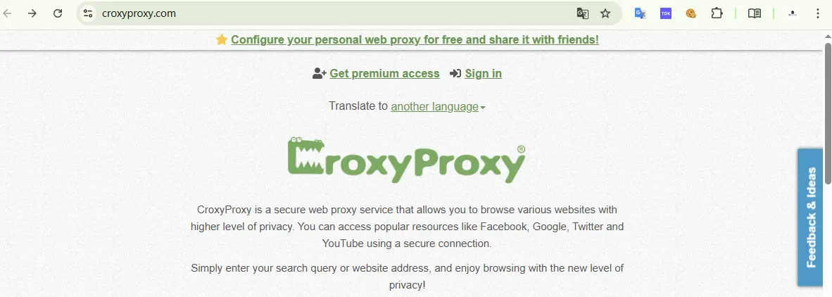 - Key Features: CroxyProxy is another free web proxy that supports video streaming, including YouTube and other popular sites. It provides SSL encryption, adding a basic layer of security to your browsing session.