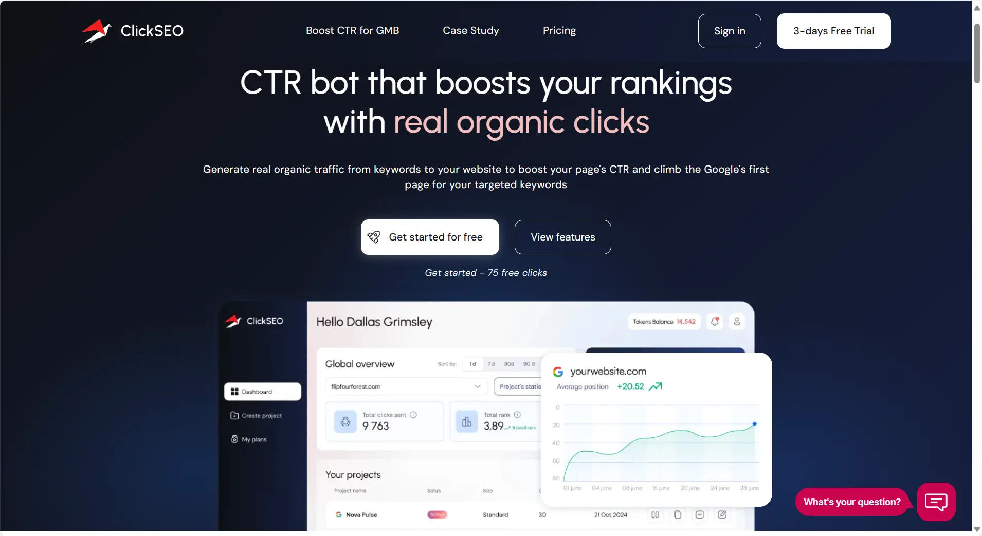 ClickSEO CTR Bot is an AI-powered tool designed to simulate real user interactions to boost your website’s click-through rate (CTR). By automating the process of generating clicks on your website, it helps improve your website’s visibility and SEO ranking.