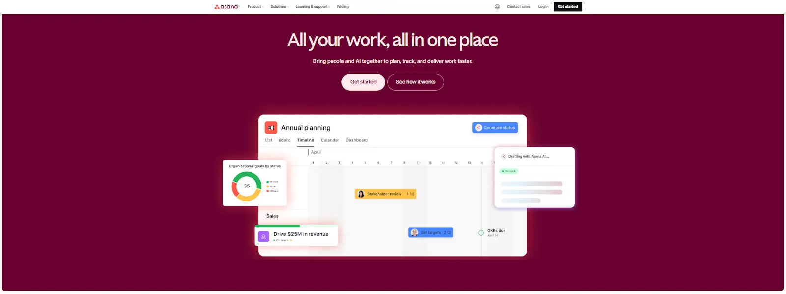 A major advantage is Asana’s ability to manage dependencies, ensuring tasks move in the right order—critical for async remote teams. With features like automations, rules, portfolios, and workload management, Asana is a top choice for marketing, product, engineering, operations, and creative teams.