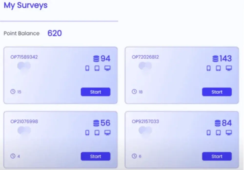 Variety of surveys: There are different types of surveys available, including short, medium, and long surveys. This variety means you can choose surveys that fit your schedule, whether you have five minutes or 30 minutes to spare.