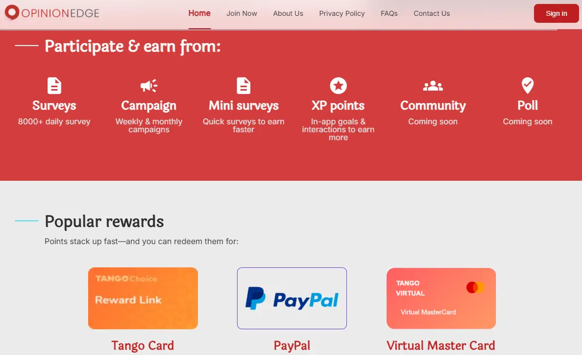 Focus on Surveys: Opinion Edge stands out because of its single focus on surveys. Unlike other platforms that provide many different earning options, Opinion Edge keeps things simple, allowing users to focus entirely on completing surveys and earning rewards. This can be a big advantage for those who prefer a straightforward approach without distractions.