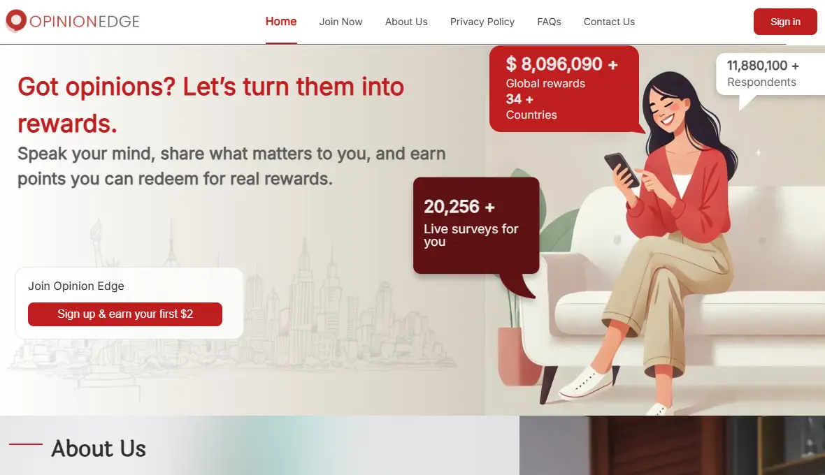 Opinion Edge is a simple and accessible survey platform that allows you to earn rewards by sharing your opinions. Whether you're looking to make some extra cash, earn gift cards, or receive shopping vouchers, Opinion Edge offers an easy way to do it. Plus, there are no sign-up fees, so you can start earning right away.