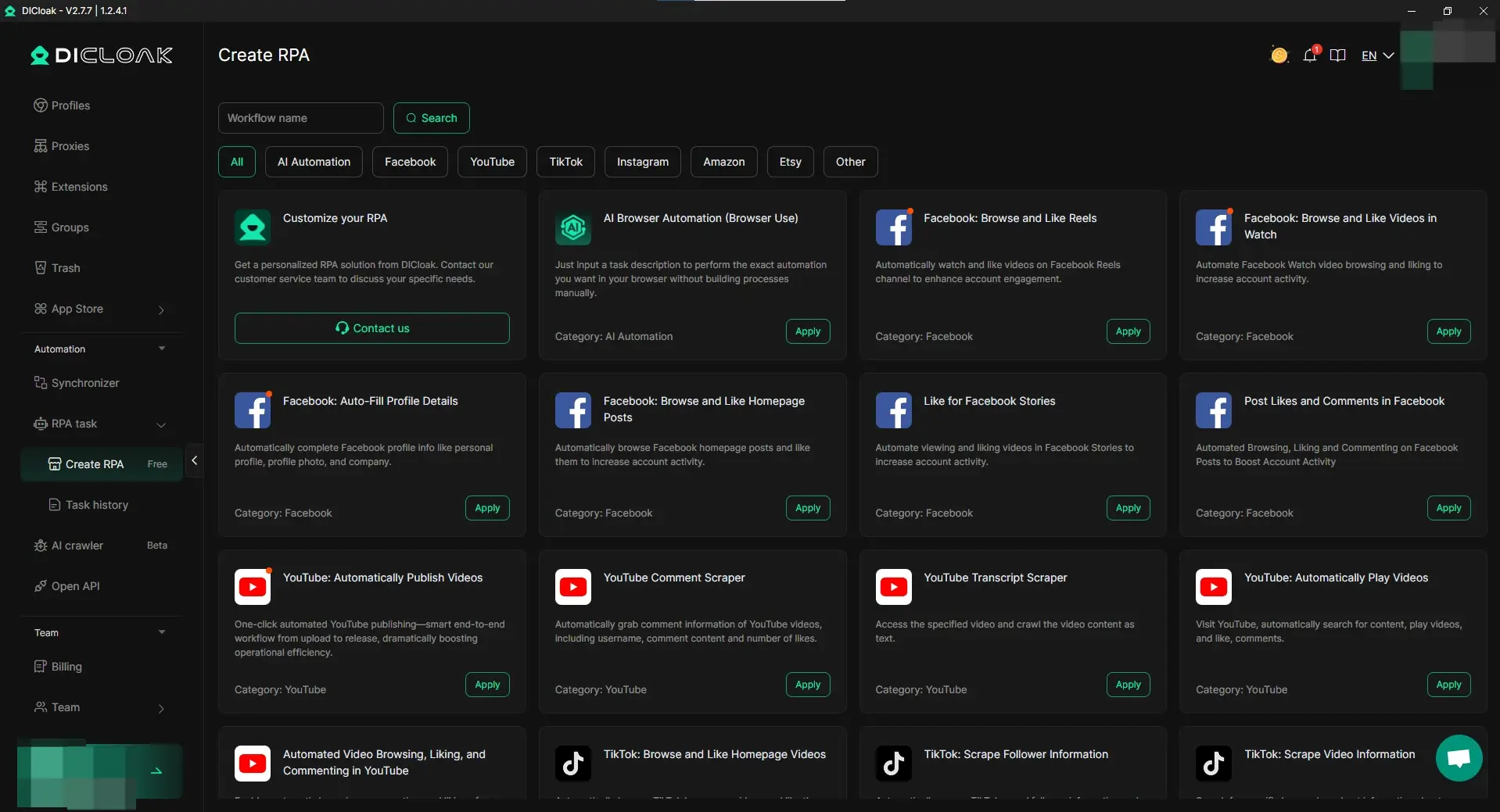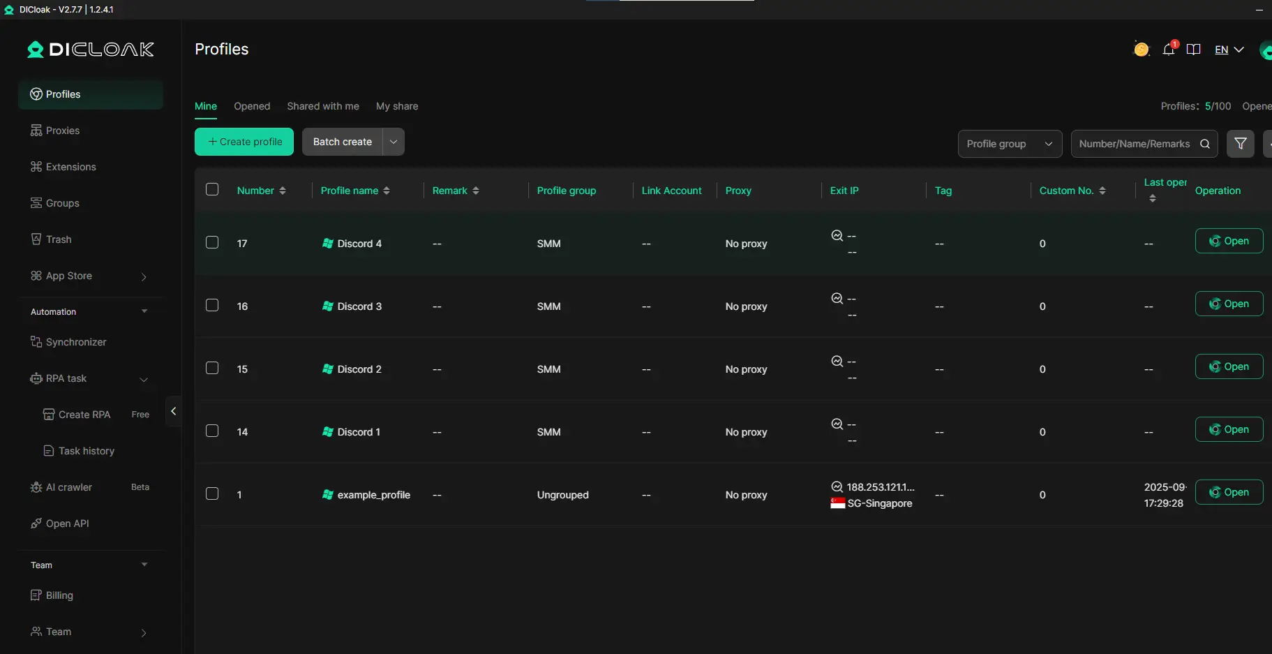 ProxyScrape supports various proxy protocols, including HTTP/HTTPS and SOCKS5, allowing real-time IP switching to mask your real IP address. By setting up ProxyScrape proxies in DICloak, each browsing profile could be linked to a unique IP and set unique fingerprints, reducing the risk of detection, fingerprint tracking, or account bans. This setup ensures anonymity and helps avoid cross-account linking, making your activities more secure while browsing different sites.