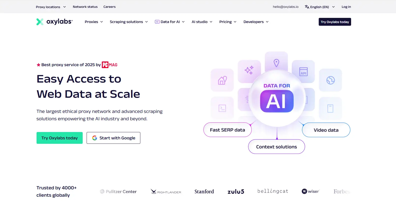 Pick Oxylabs if you need powerful infrastructure for data extraction, brand monitoring, or ad verification. It’s one of the fastest and most stable enterprise proxy networks worldwide.
