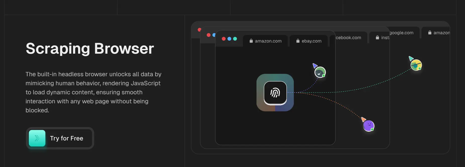 Scraping Browser is a cloud-based, serverless browser automation tool designed to address three core challenges in dynamic web scraping: high-concurrency bottlenecks , anti-scraping evasion , and cost control.
