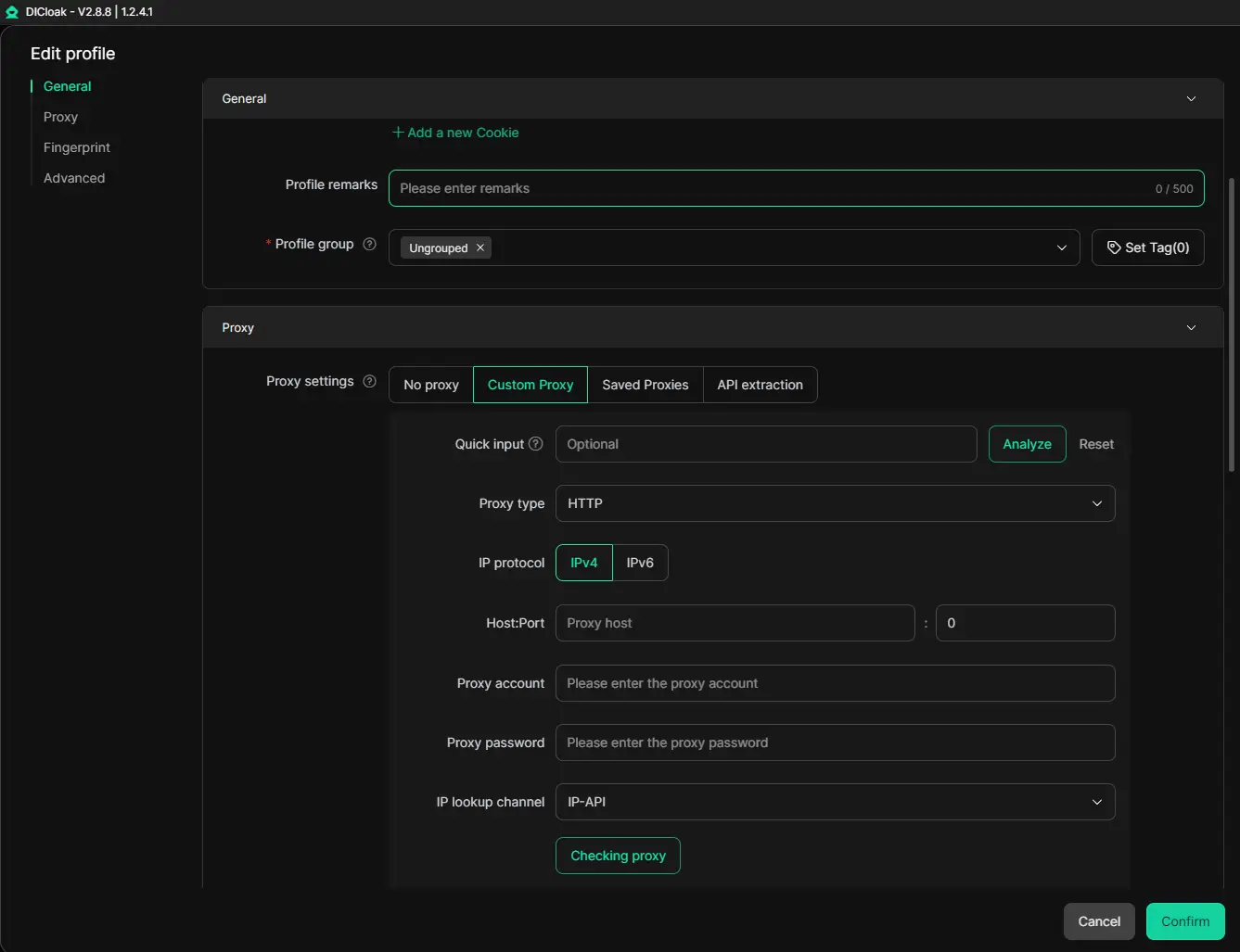 If running multiple accounts, ensure proxies can be easily configured inside DICloak profiles.