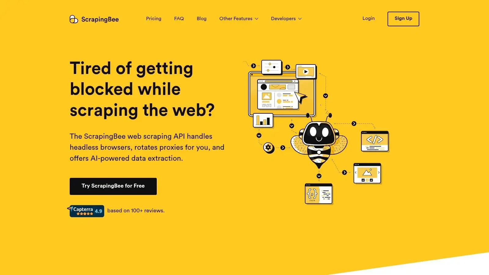 Tired of wrestling with proxies, CAPTCHAs, and constantly shifting anti-scraping tactics? ScrapingBee is your answer. This powerful web scraping API takes care of the technical hurdles, letting you concentrate on extracting the valuable data you need. Whether you're an affiliate marketer juggling multiple programs, an e-commerce entrepreneur managing product listings, a social media guru gathering insights, a data analyst uncovering hidden trends, or a digital advertiser optimizing campaigns, ScrapingBee streamlines the entire process.