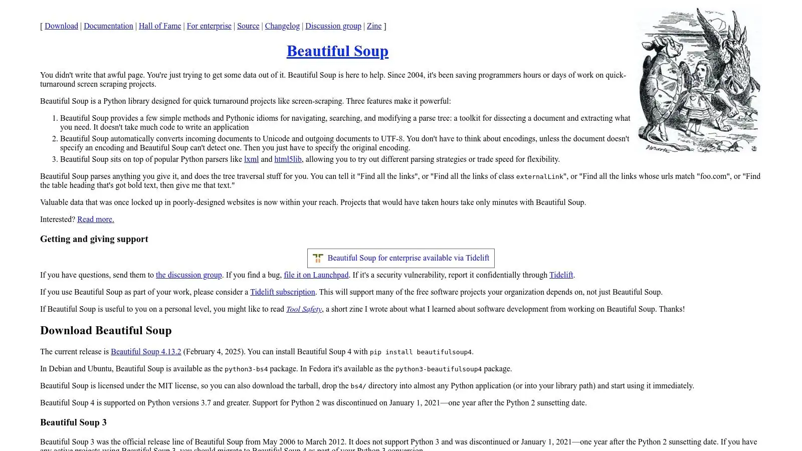 | BeautifulSoup | HTML/XML parsing; lightweight library | Easy for basic Python users | Simple and well-documented | Python programmers | Gracefully handles malformed markup |