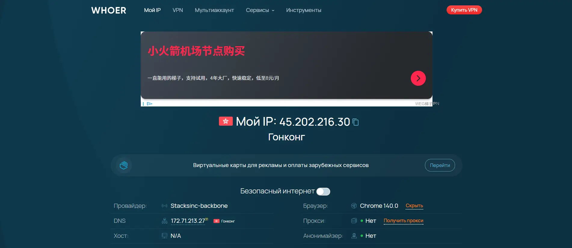 Whoer Net, on the other hand, goes deeper into the connection itself. It checks the quality of your route, the type of network you’re using, and whether your system’s signals match your internet path. It answers the question: “How does my traffic travel, and does it look natural?”