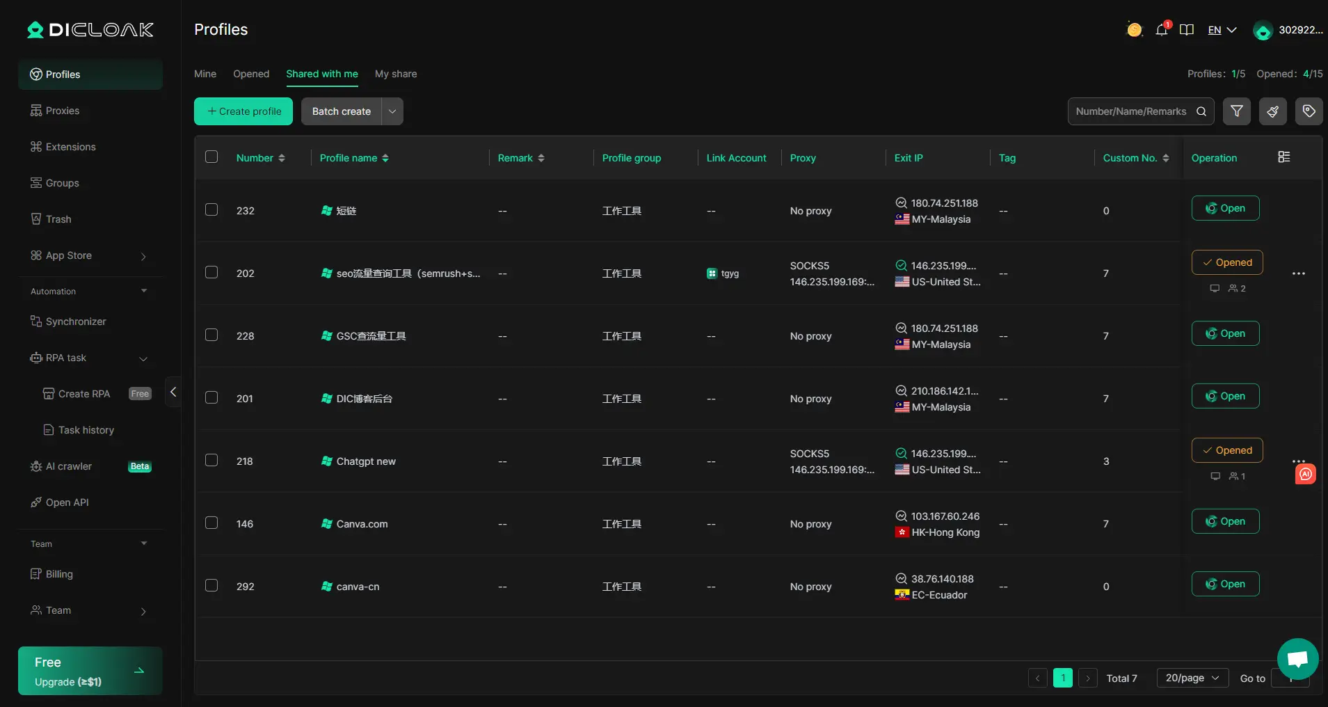 DICloak allows you to create and manage multiple isolated profiles. This means cookies, fingerprints, cache, and local data do not mix between profiles.