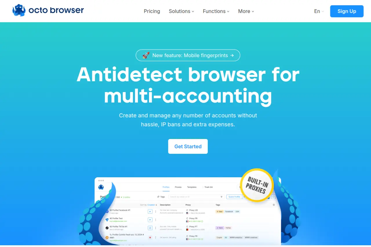 Octo Browser está diseñado para la velocidad. Utiliza un núcleo de navegador personalizado para asegurar que pasa las comprobaciones rápidamente. Es popular en los sectores cripto y de apuestas, que tienen requisitos de seguridad similares a los de Amazon.