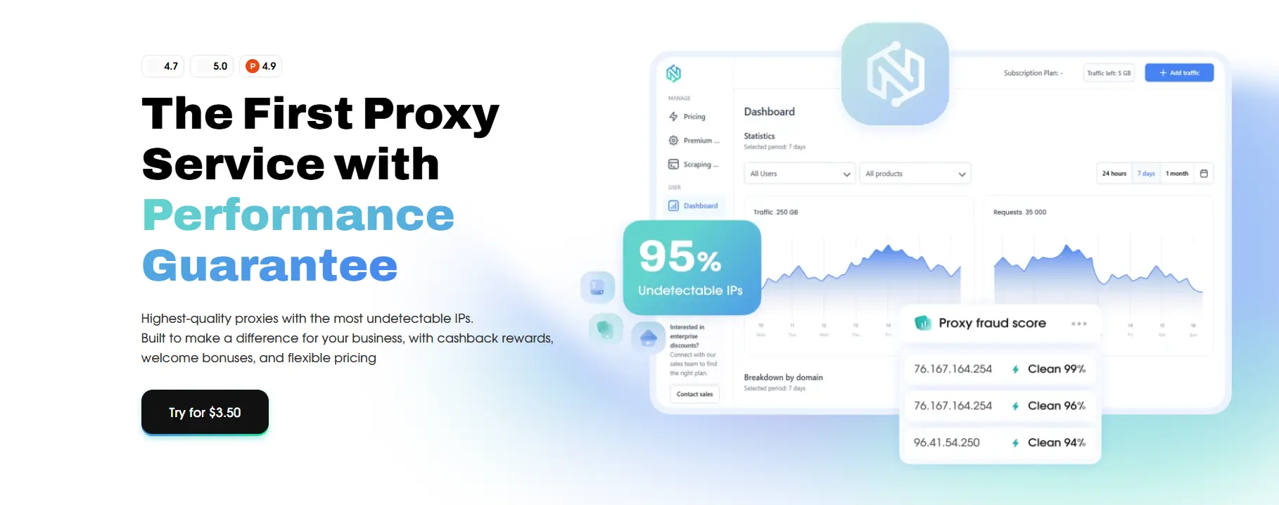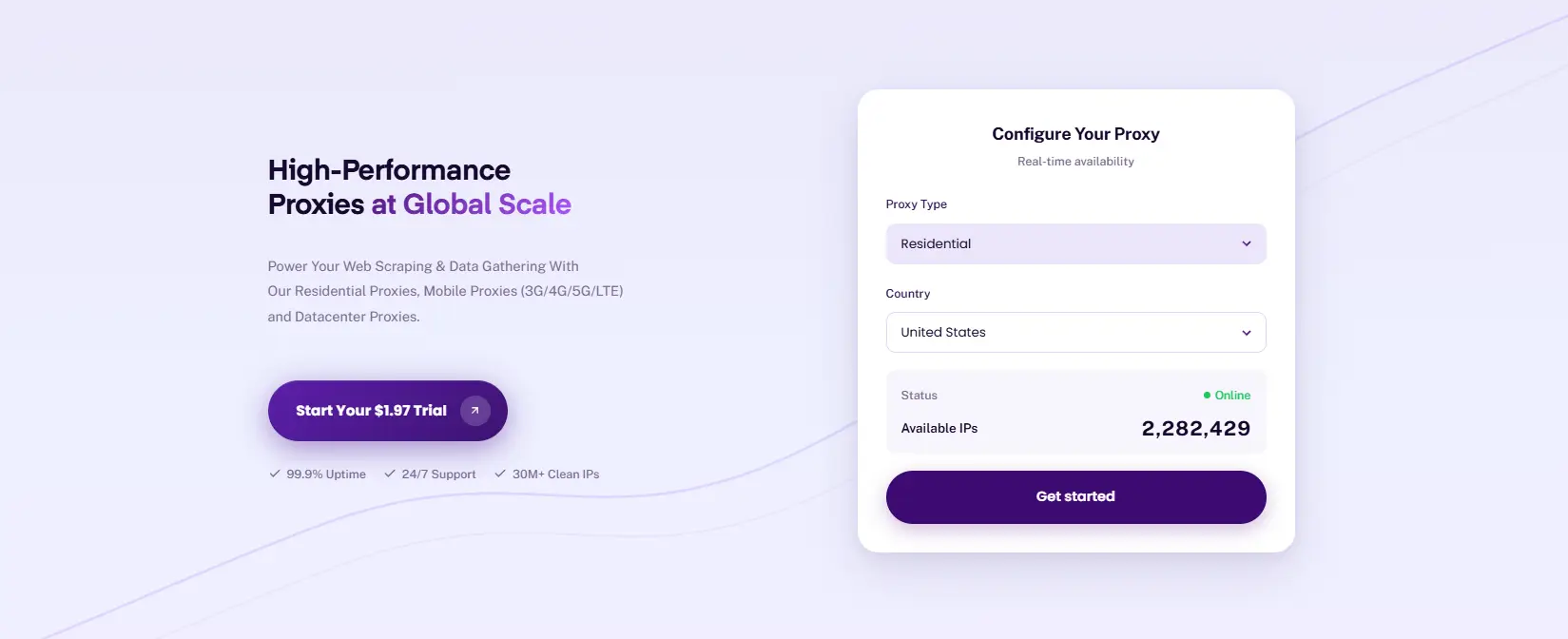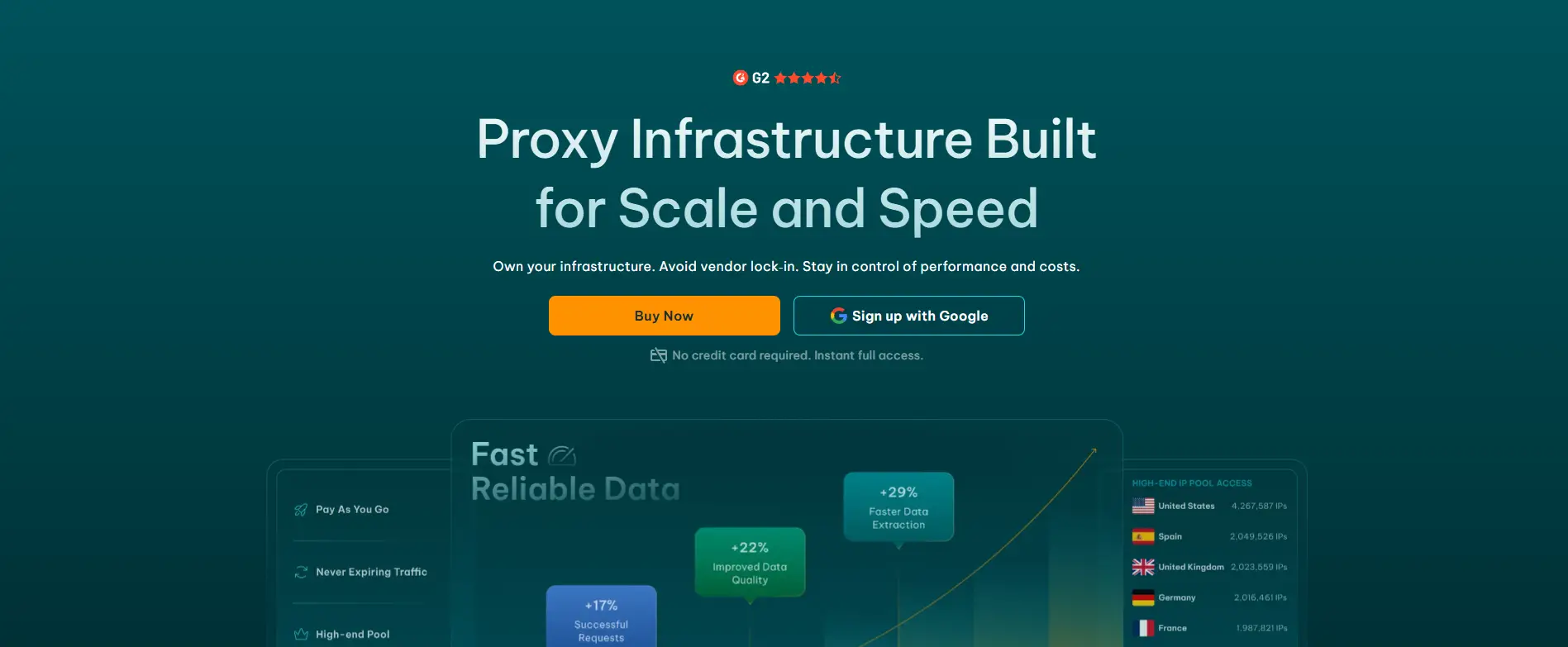 Ventajas: La marca Smartproxy sigue siendo ampliamente reconocida; apoyo a Pakistan SOCKS5; sesiones de pegajos; Cifras sólidas de velocidad y tiempo de actividad publicadas.