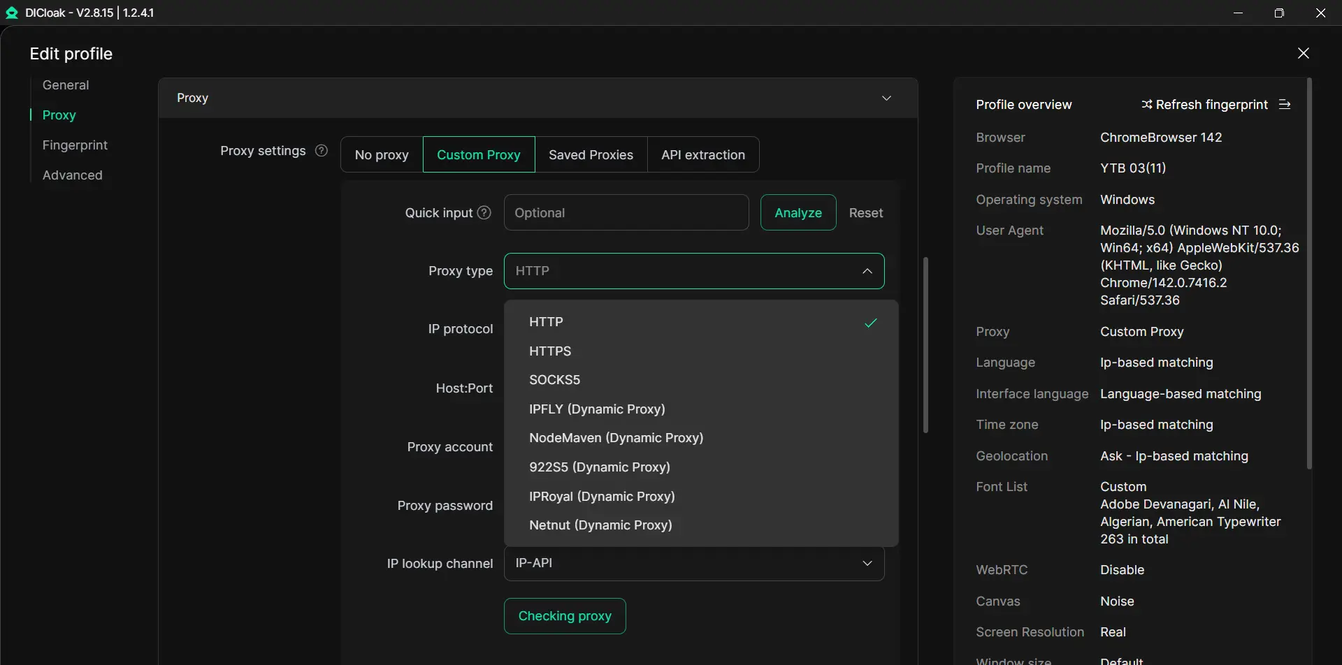 Cuando la gente escala los flujos de trabajo de TikTok, también debe mantener la configuración de cada cuenta consistente. Una forma común es asignar un proxy separado a cada perfil de navegador. DICloak no proporciona proxies, pero los usuarios pueden añadir sus propios ajustes de proxy a diferentes perfiles.