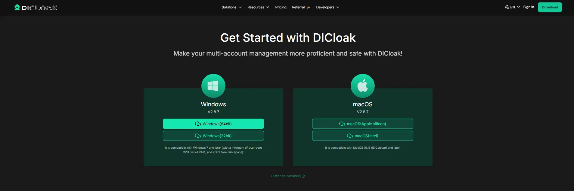 1. Descargar y Regístrate: Descargar el instalador desde la web de DICloak. Después de instalar, abre la app de DICloak y completa el proceso de registro dentro del cliente.