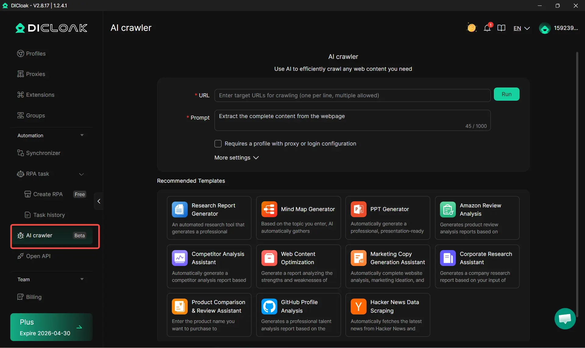 Mantén tus cuentas activas y comprometidas con las herramientas de automatización integradas de DICloak. Describe las tareas en lenguaje sencillo, y el RPA de DICloak gestiona automáticamente las acciones repetitivas. El Multi-Window Synchronizer también te permite dar me gusta, comentar y seguir en múltiples perfiles y plataformas simultáneamente, imitando el comportamiento real del usuario para una navegación segura en redes sociales.