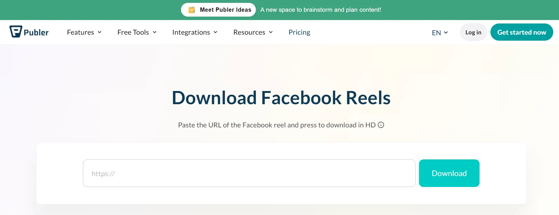 Publer ofrece un descargador gratuito de Facebook Reels limpio y con luz publicitaria. No requiere inicio de sesión ni añade marcas de agua. La herramienta se centra en la simplicidad y la calidad del vídeo.