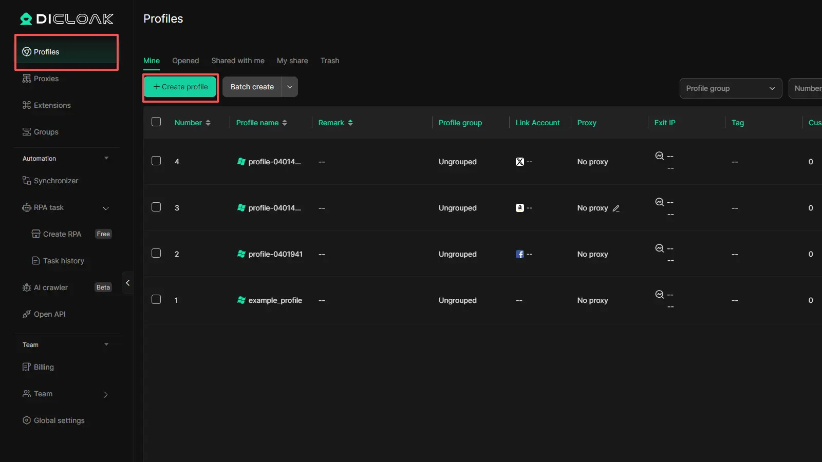 Si usas diferentes cuentas de Pinterest para distintas tareas, mantenerlas en un solo navegador puede volverse un lío rápidamente. Las cookies, los inicios de sesión y las sesiones guardadas pueden solaparse. DICloak ofrece a cada perfil su propio perfil aislado de navegador, lo que facilita mantener las sesiones de Pinterest separadas y más organizadas.