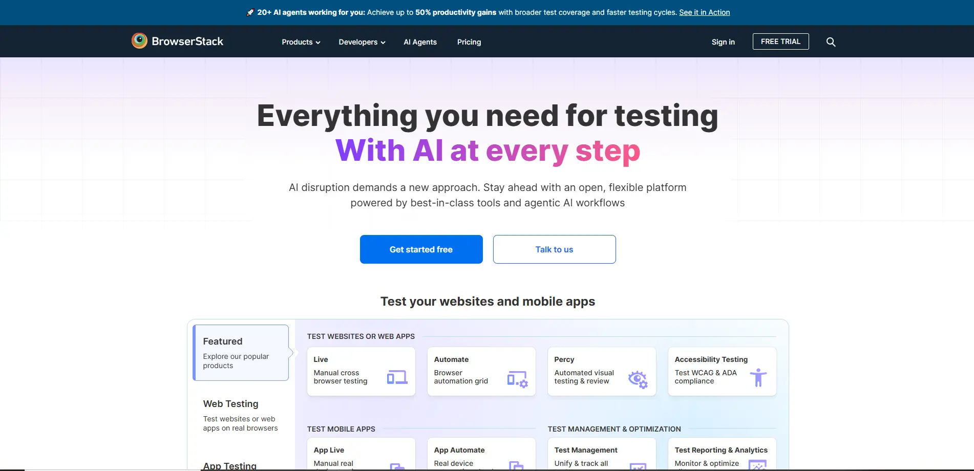 BrowserStack adopta un enfoque diferente centrándose en pruebas profesionales de control de calidad. Su función "App Live" te permite subir un APK online y ejecutarlo en hardware real dentro de un centro de datos seguro.