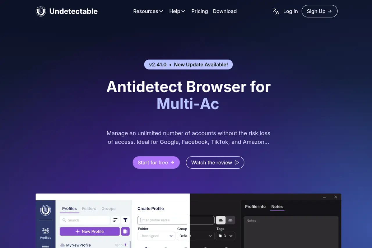 HideMyAcc utiliza un navegador personalizado "Ghosty" construido sobre Chromium. Está diseñado para minimizar las señales de hardware únicas que envía tu ordenador. La función "Magic Link" te permite transferir un perfil a un miembro del equipo al instante. Es especialmente eficaz para los vendedores del sudeste asiático que se enfrentan a estrictos bloqueos regionales.