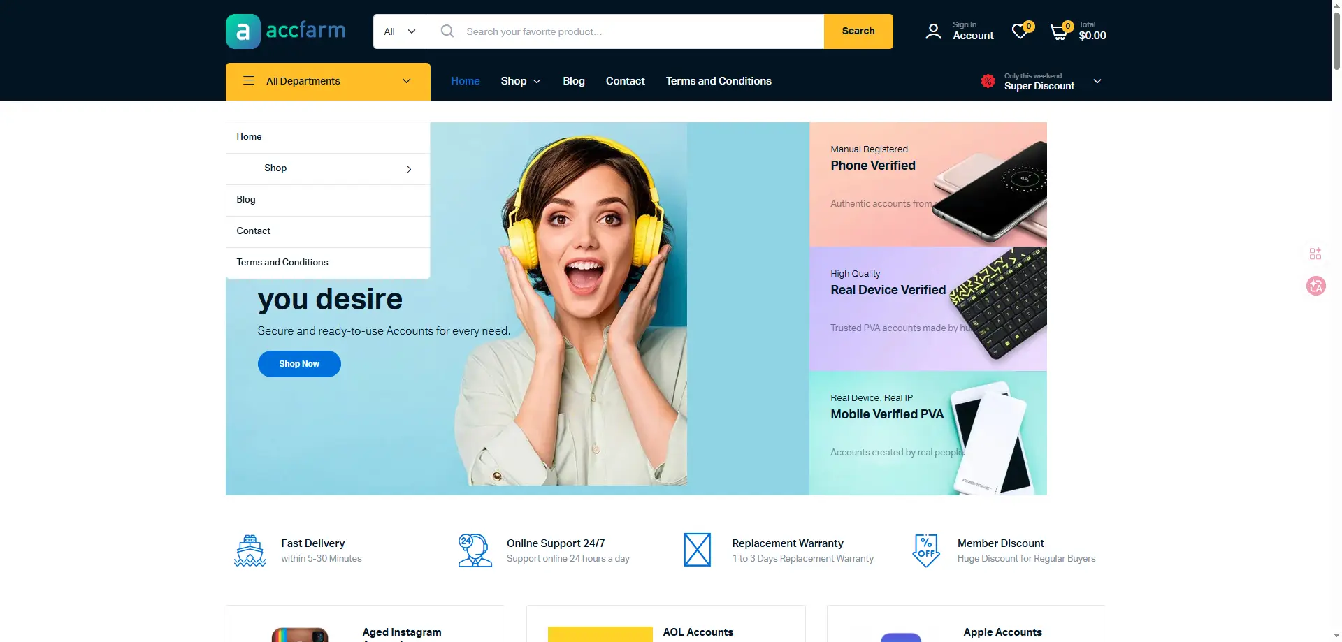 Si vous avez besoin de beaucoup de comptes — comme 50 ou 100 en même temps — Accfarm est l’endroit où aller. Ils disposent d’un vaste inventaire de profils provenant de presque tous les pays du monde.