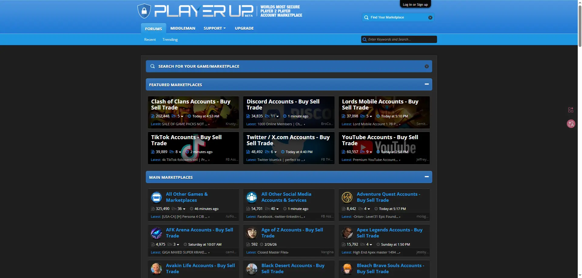 PlayerUp est un immense marché où les gens achètent et vendent directement les uns aux autres. Il utilise un système « séquestre », ce qui signifie que le site retient votre argent jusqu’à ce que vous soyez satisfait du compte.
