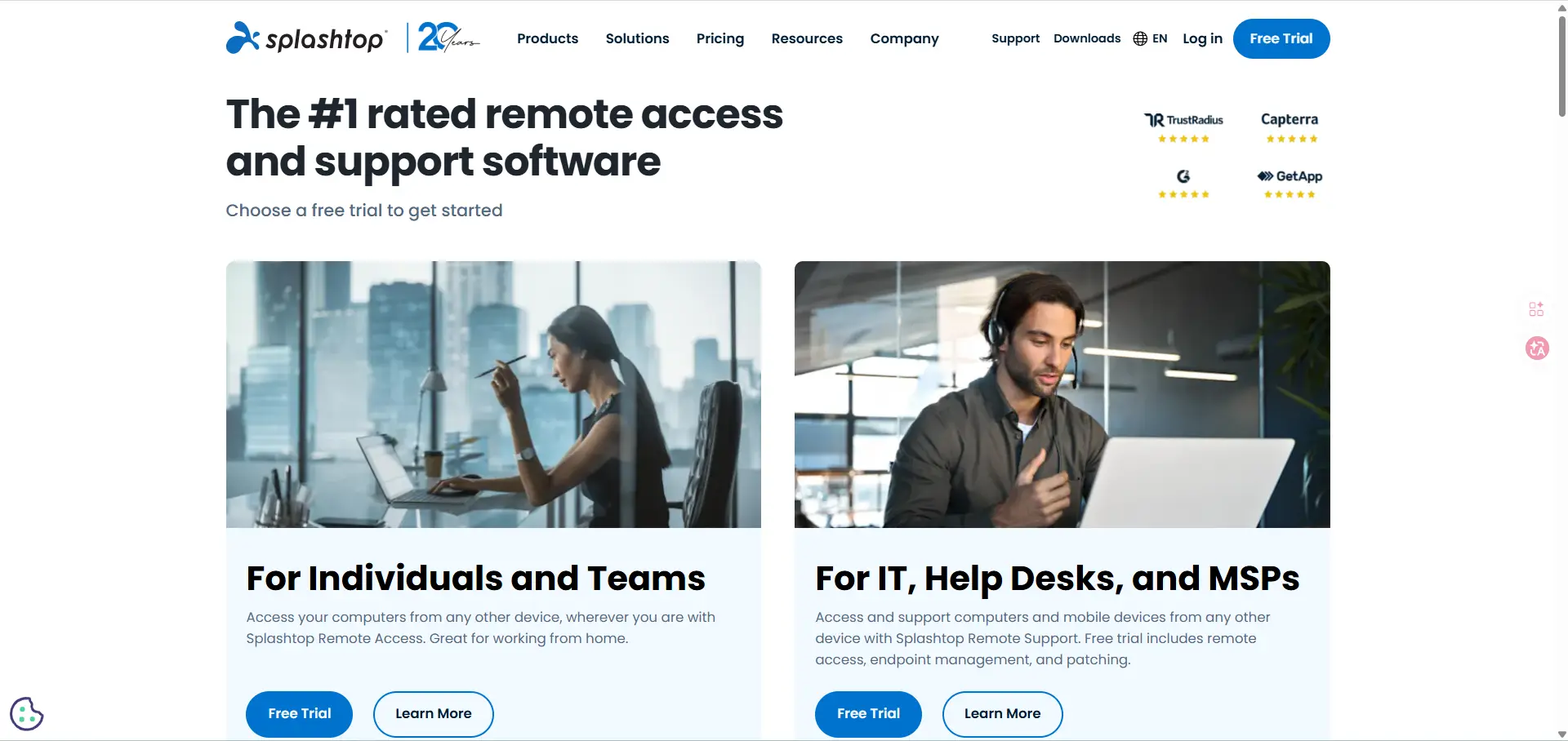 En termes simples, Splashtop vous aide à ouvrir votre ordinateur professionnel depuis chez vous, à accéder aux fichiers sur une autre machine, à lancer des applications à distance ou à prendre en charge un autre appareil sans être au même endroit. Splashtop sépare ces cas d’usage en différentes gammes de produits : l’accès à distance est principalement destiné aux individus ou équipes accédant à leur propre ordinateur, tandis que le support à distance s’adresse aux équipes informatiques et aux MSP aidant ou gérant d’autres appareils.