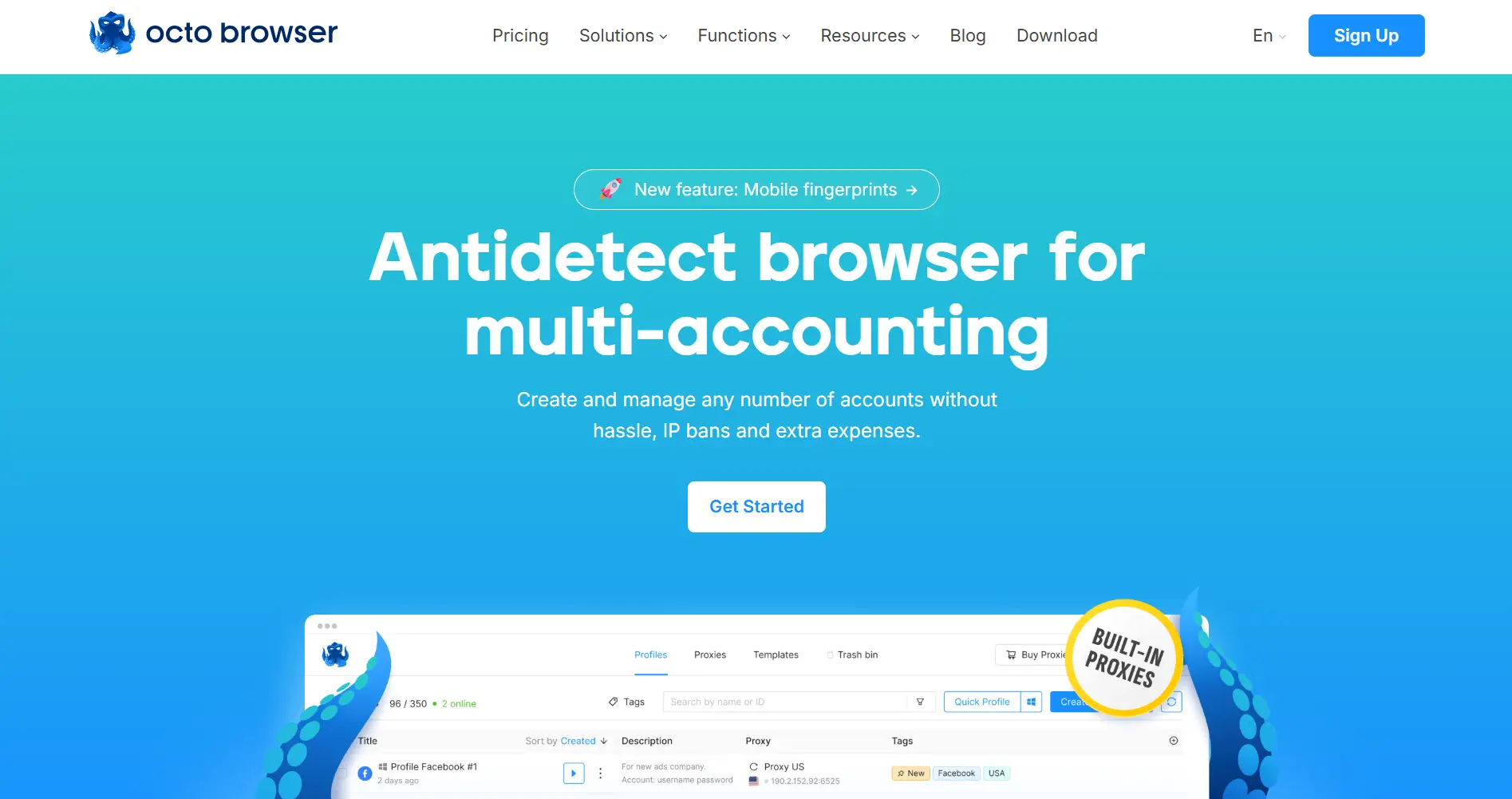 O Octo Browser conquistou respeito genuíno entre os utilizadores focados na privacidade — a identificação das impressões digitais mantém-se bem e o desempenho mantém-se estável sob pressão. Mas chegar a esse ponto é frustrante. Não há preços públicos, a documentação de funcionalidades é escassa e nem sequer se pode começar uma avaliação adequada sem passar primeiro por uma chamada de vendas.