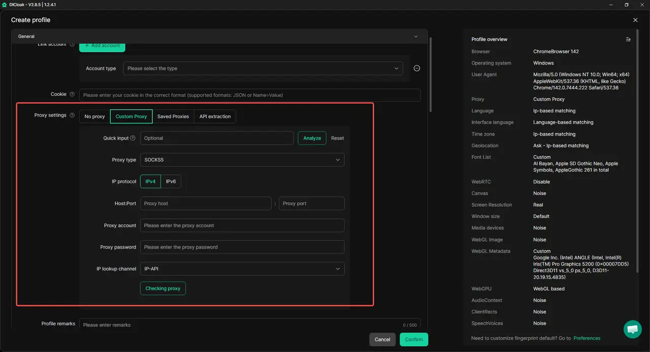Ver filmes em inglês gratuitamente nos melhores sites é mais fácil quando a tua configuração de navegação se mantém limpa e previsível. O streaming gratuito vem frequentemente acompanhado de anúncios, rastreadores e catálogos baseados na região. Uma configuração de streaming separada pode reduzir o ruído e proteger as suas contas principais. Com o navegador antidetect DICloak, os utilizadores podem executar streaming em perfis de navegador isolados e definir proxies personalizados por perfil, o que ajuda a manter as sessões separadas e mais estáveis entre os 20 melhores sites gratuitos de streaming de filmes.