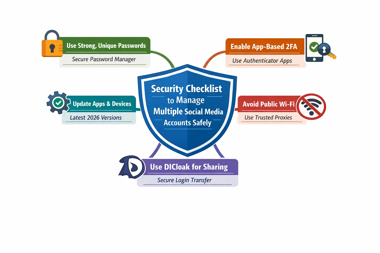 Para gerir com sucesso múltiplas contas de redes sociais em 2026, deve priorizar a segurança e a eficiência. Usar ferramentas profissionais como o DICloak permite-lhe evitar os riscos de banimento de contas e ajuda a sua equipa a manter-se produtiva.