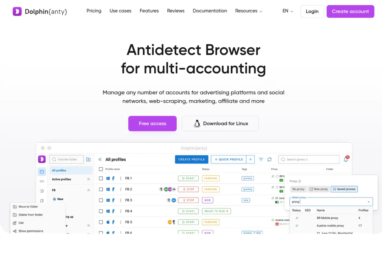 許多用戶會搜尋Genlogin與Dolphin Anty的比較,因為這兩款工具的目標使用者都是媒體採購人員與聯盟行銷人員。Dolphin{anty}著重於Facebook、TikTok這類社群媒體平台。