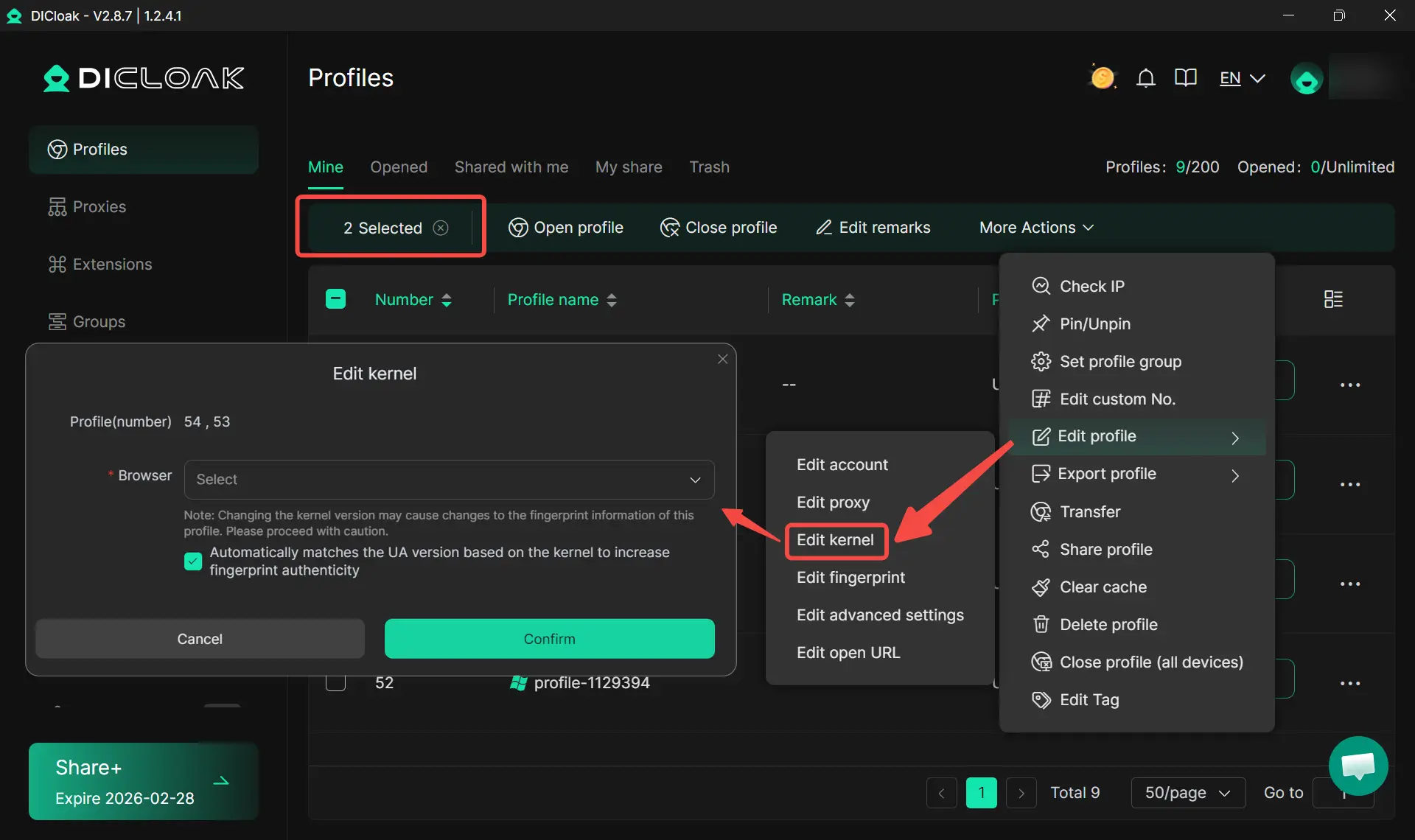 管理多個設定檔變得更輕鬆了!DICloak 現在支援一次性修改多個設定檔的核心,節省您寶貴的時間,同時確保所有設定檔的設定一致。