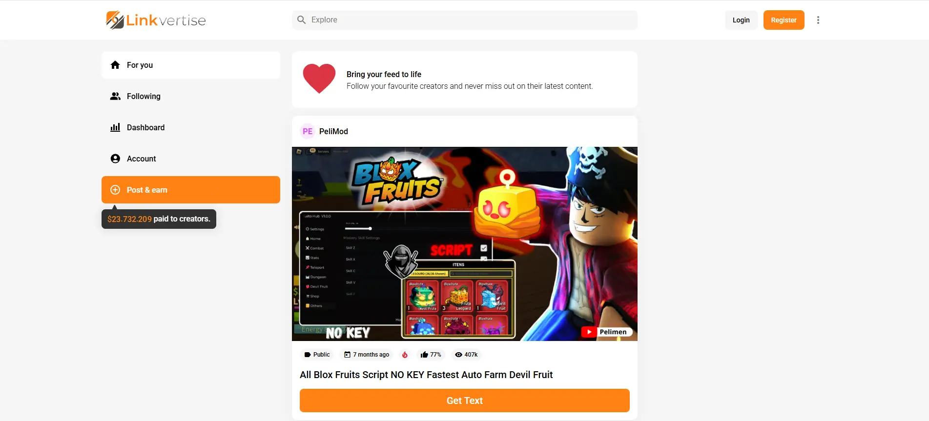 Linkvertise是一個短網址平台,協助創作者透過分享連結賺取收益。創作者不會直接將使用者導向檔案或網站,而是在中間加入一個Linkvertise頁面。在最終連結開啟前,該頁面會顯示廣告或短暫的等待步驟。你經常會在YouTube說明、Discord伺服器或論壇中看到Linkvertise連結。例如,遊戲模組創作者可能會分享免費下載連結,但透過Linkvertise讓每一次點擊都能協助負擔成本。這類模式常見於免費工具、指南或社群內容。