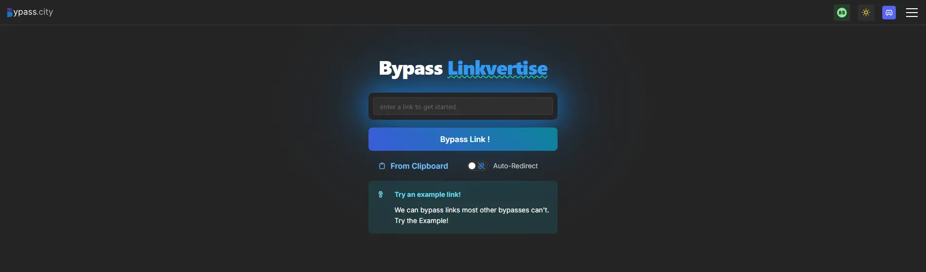 Bypass.vip是一款基於網頁的工具,許多用戶在尋找跳過Linkvertise的方法時都會先嘗試它。它是為一次性快速使用設計,不需要帳號、瀏覽器外掛或本機安裝。