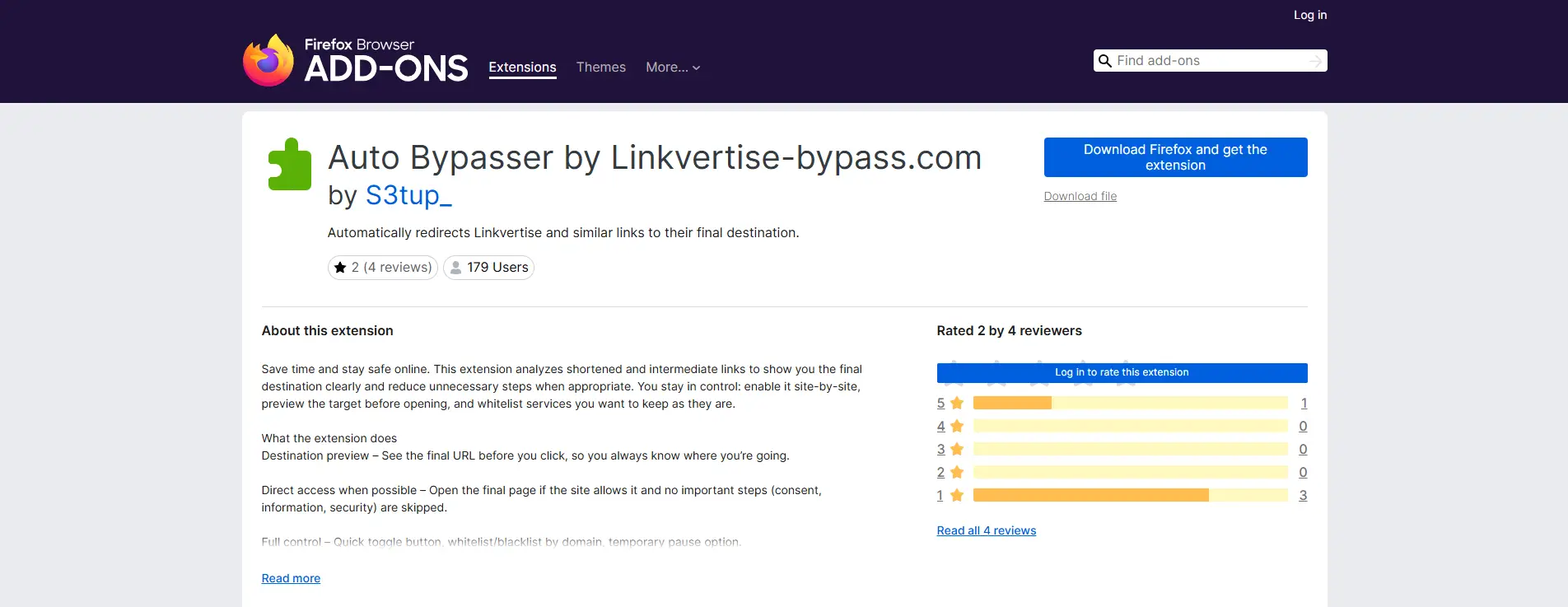 Không phải lúc nào cũng vậy. Dựa trên web Đội trưởng Linkvertise thường dễ dàng hơn khi sử dụng một lần vì nó tránh cài đặt đầy đủ. Các tiện ích mở rộng và tập lệnh người dùng có thể cảm thấy mượt mà hơn khi sử dụng nhiều lần, nhưng chúng cũng đòi hỏi sự tin tưởng nhiều hơn. Ví dụ: tiện ích bổ sung Firefox Auto Bypasser của Linkvertise-bypass.com được thiết kế để tự động chuyển hướng các liên kết được hỗ trợ, điều này rất tiện lợi, nhưng nó vẫn bổ sung thêm một lớp truy cập trình duyệt khác mà người dùng nên xem xét cẩn thận.