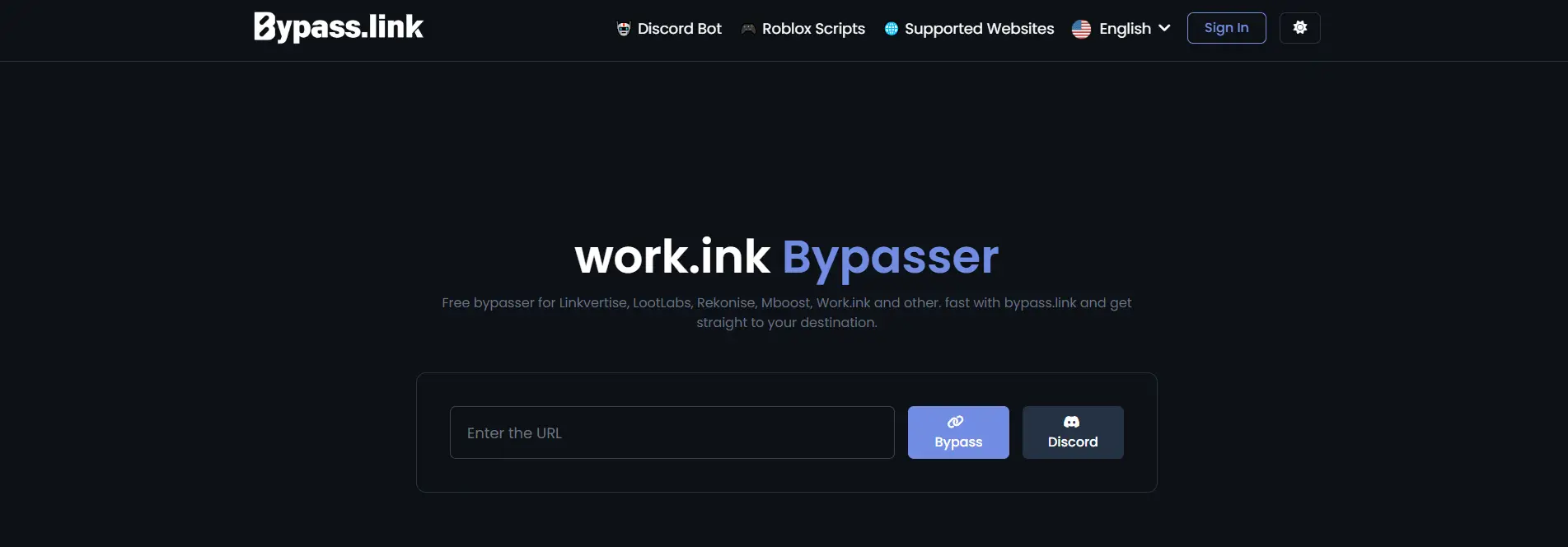 Bypass.link là một Linkvertise Bypasser tự thể hiện mình là một dịch vụ sạch, cập nhật cho Linkvertise và các nền tảng liên kết quảng cáo khác. Nó tập trung vào truy cập nhanh và cập nhật thường xuyên.