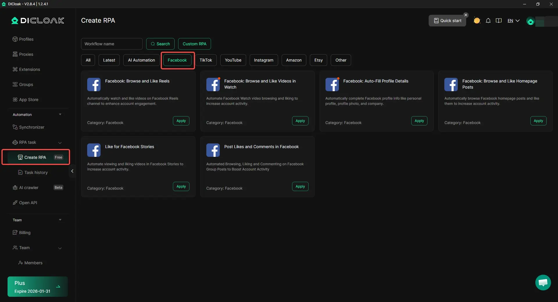 Thời gian xem và tương tác ảnh hưởng trực tiếp đến lượt xem được kiếm tiền. Sử dụng các công cụ tự động hóa RPA tích hợp của DICloak, các hành động thường ngày như thích bài đăng, bình luận hoặc theo dõi có thể được xử lý theo cách tự nhiên, giống con người hơn. Bộ đồng bộ hóa cũng giúp dễ dàng tương tác trên nhiều Trang cùng lúc, giúp các tài khoản duy trì hoạt động mà không tạo ra các mẫu hành vi bất thường.