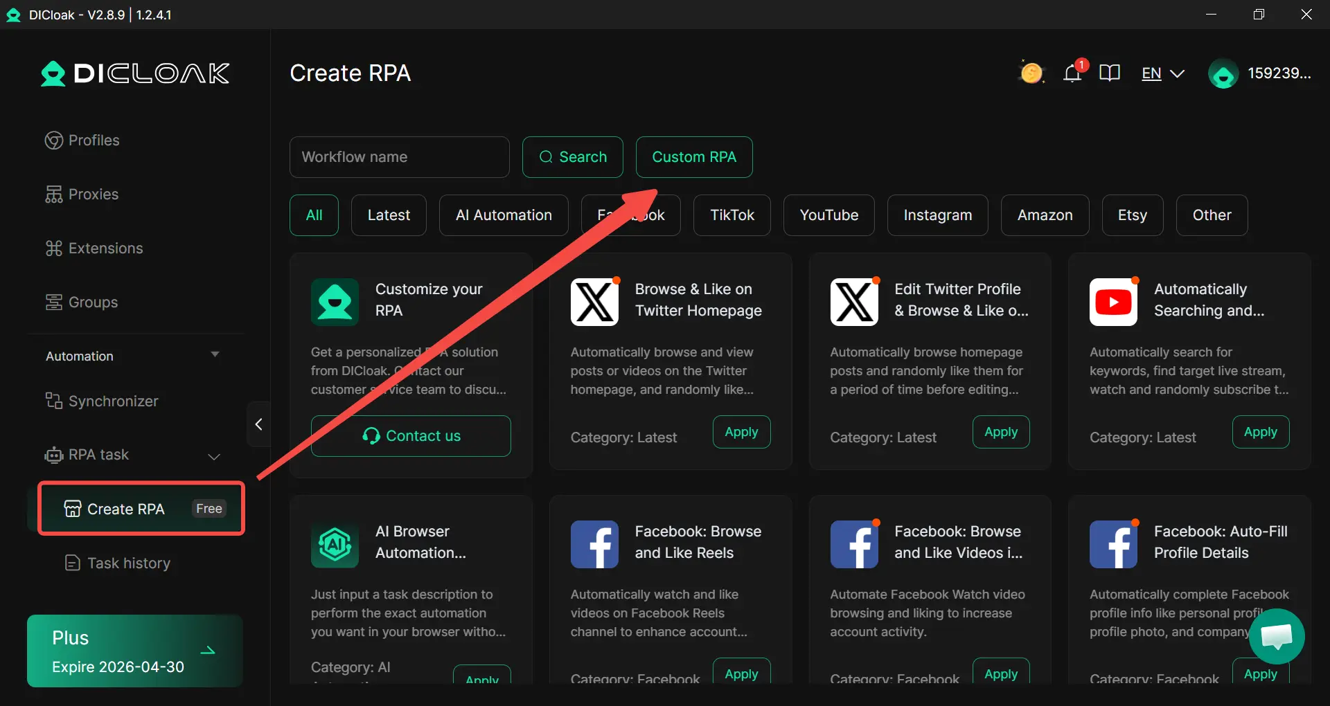 Trên quy mô lớn, quản lý tài khoản thủ công là một nút thắt cổ chai. Tự động hóa quy trình robot (RPA) của DICloak cho phép tự động hóa các tác vụ lặp đi lặp lại, chẳng hạn như "hâm nóng" các tài khoản mới để thiết lập lịch sử đáng tin cậy hoặc tải hàng loạt danh sách thị trường. Các công cụ quản lý hồ sơ hàng loạt cho phép người vận hành khởi chạy hàng trăm hồ sơ duy nhất chỉ bằng một cú nhấp chuột, cung cấp cơ sở hạ tầng cần thiết cho hoạt động cấp doanh nghiệp.